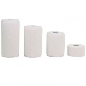Bande de contention élastique adhésive hypoallergénique, tissée enduite d'une masse adhésive composée d'élastomères et de résine de synthèse, sans solvant.