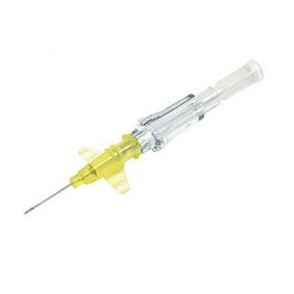 - Un poussoir à l'embase de la canule, pour pouvoir avancer le cathéter dans la veine.