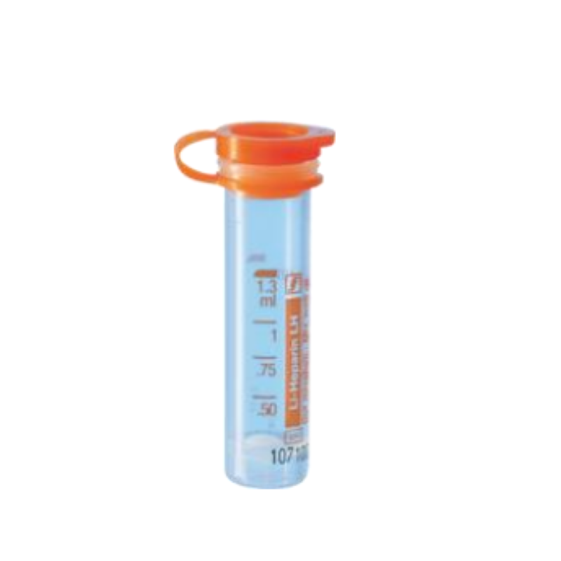 Désignation commerciale : Microtube 1,3 ml, Héparine Lithium, bouchon pression attaché orange