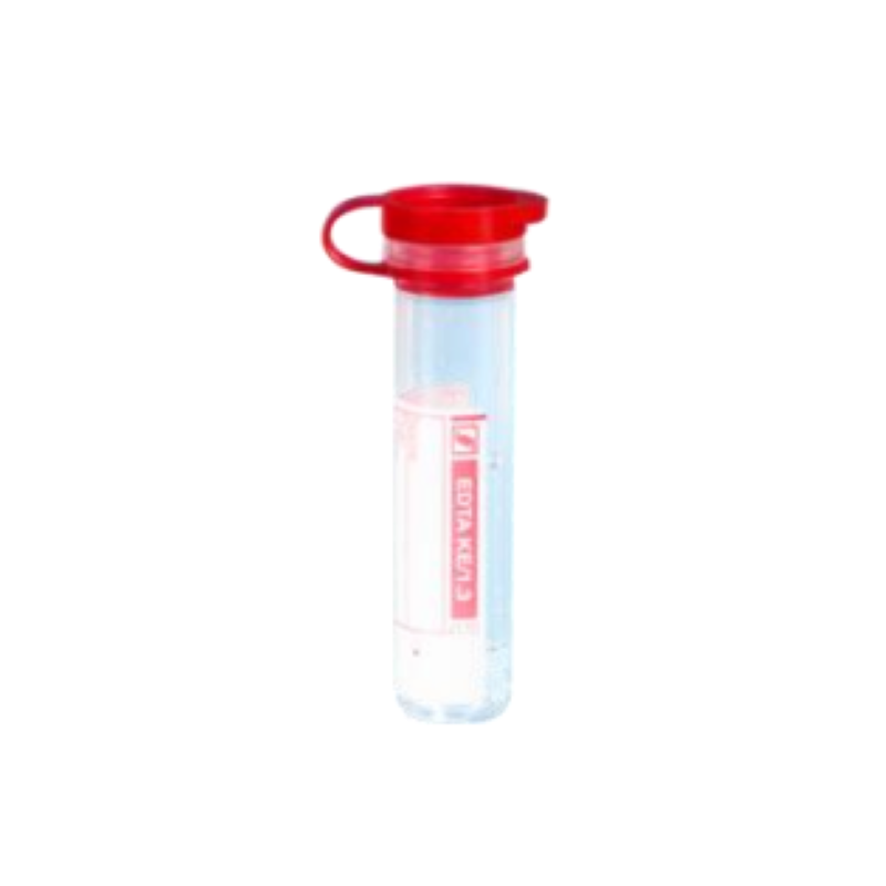Microtube 1,3 ml, EDTA K3 ° bouchon pression attaché rouge, étiquette transparente