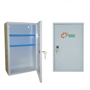 Armoire à pharmacie blanche, vide, en tôle, 1 porte, 2 étagères.