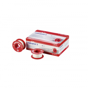 BSN Médical Leukoplast S Pansement est constitué d'un support tissé ( acétate ), sécable sans ciseaux et d'un adhésif à base de caoutchouc, résines naturelles et oxyde de zinc.