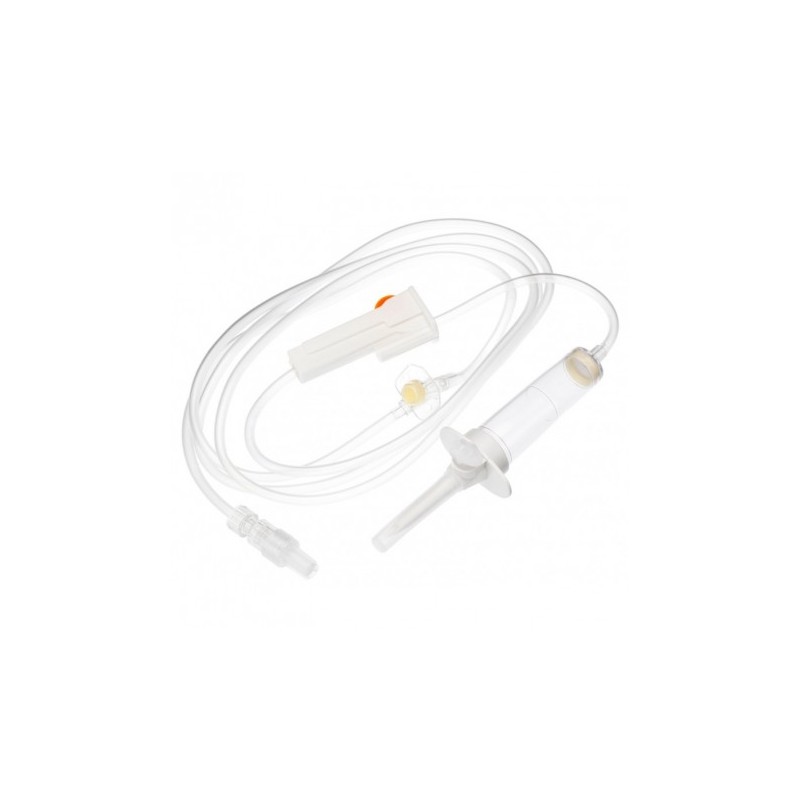 - Tubulure transparente sans DEHP ajouté: 180 cm (150 + 30 cm).