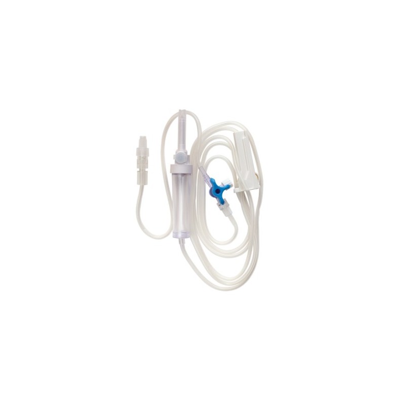 160cm entre la chambre compte-gouttes et le robinet 3 voies + 25cm entre le robinet 3 voies et le Luer Lock (chambre compte-goutte de 72mm)